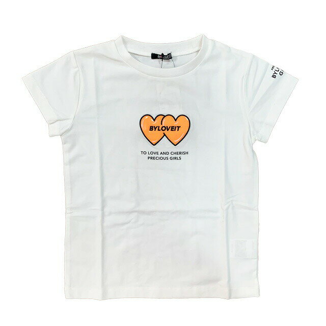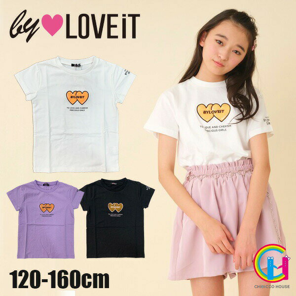 【2021春夏新作】by LOVEiT ハートTシャツ 7811249(子供服 女の子 ジュニア トドラー 清楚 可愛い バイラビットトップス 半袖 Tシャツ プリント クリアワッペン オフホワイト ラベンダー 紫 ブラック 黒 春 夏)