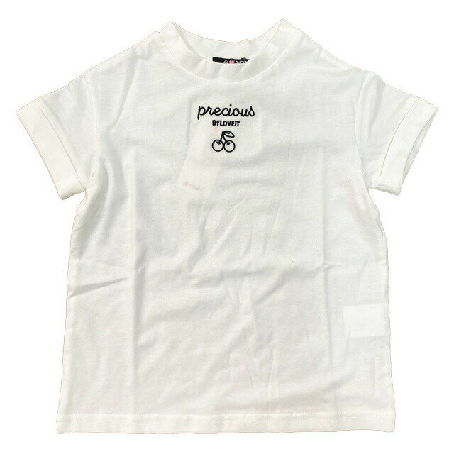 【2021春夏新作】by LOVEiT チェリー刺繍Tシャツ 7811240(子供服 女の子 清楚 可愛い バイラビット トップス 半袖 Tシャツ 刺繍 オフホワイト ピンク 白 ラベンダー ブラック 紫 黒 春 夏)