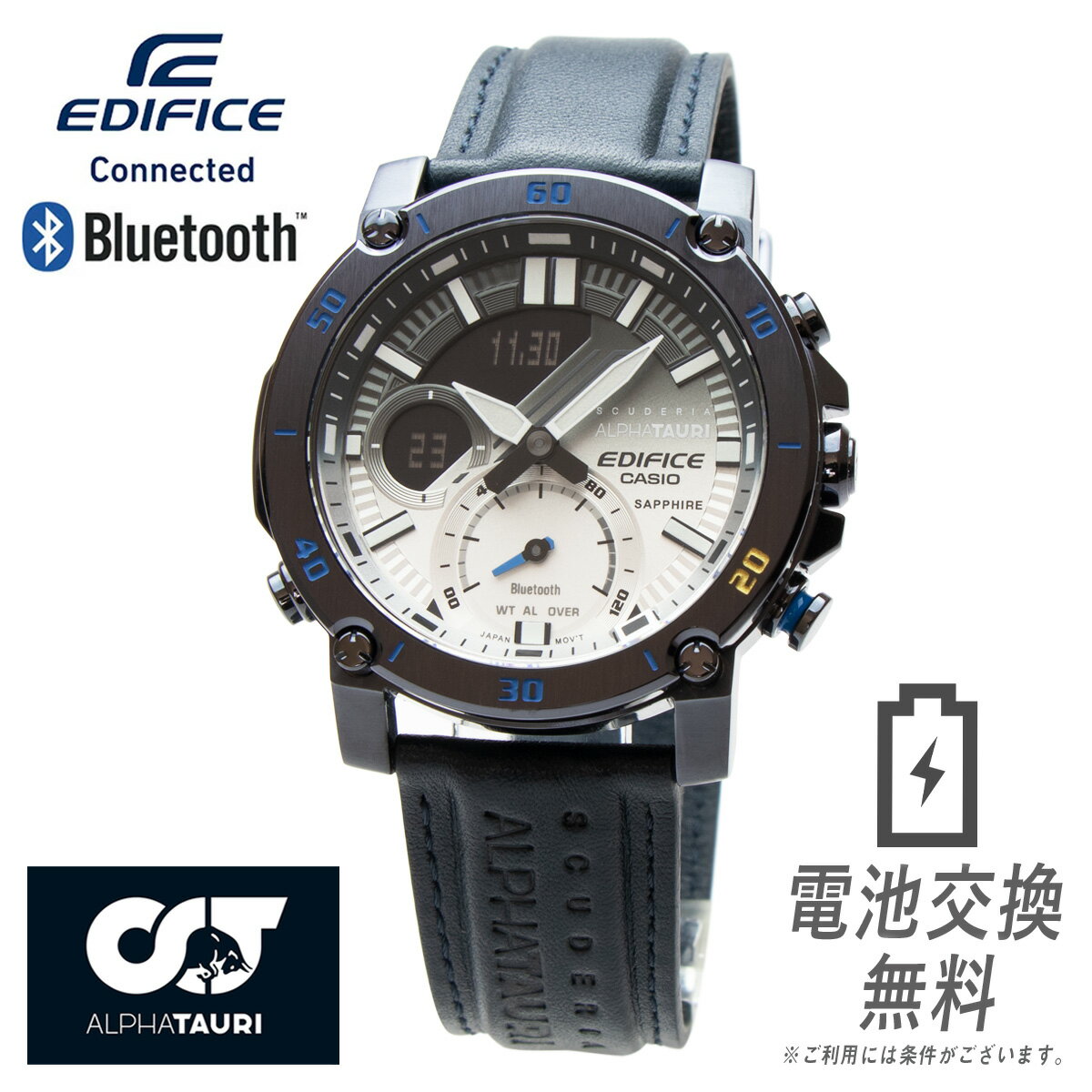 【ラッピング無料!電池交換無料!返品OK!】エディフィス 限定モデル カシオ CASIO EDIFICE アルファタウリ レーシング F1 F-1 Scuderia AlphaTauri Limited Edition Bluetooth ブルートゥース スマホリンク スマホ連動 ECB-20AT-2A クロノグラフ アナデジ 青 ネイビー